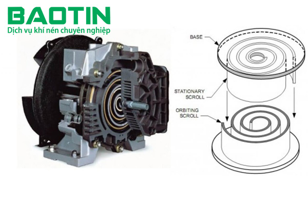 - Hai đĩa xoắn ốc này được đặt ăn khớp với nhau để tạo thành một túi hình lưỡi liềm. Trong đó, phần xoắn ốc tĩnh sẽ được cố định và phần xoắn ốc còn lại sẽ di chuyển quanh phần xoắn ốc cố định theo trục chuyển động lệch tâm.