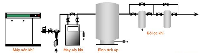 – Máy sấy khí là thiết bị được lắp đặt ngay sau máy nén khí và được lắp đặt trước bình tích áp.