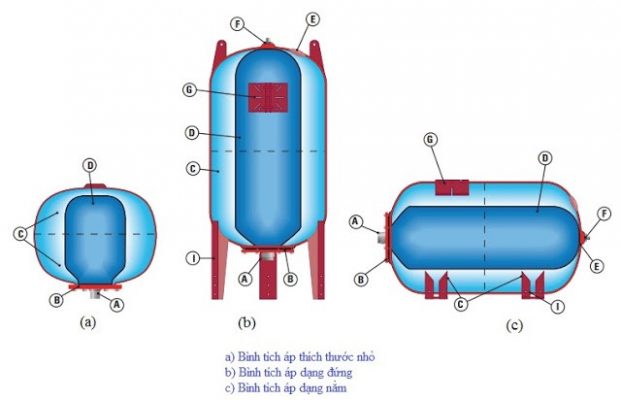 – Có 3 loại bình tích áp khí nén cơ bản: