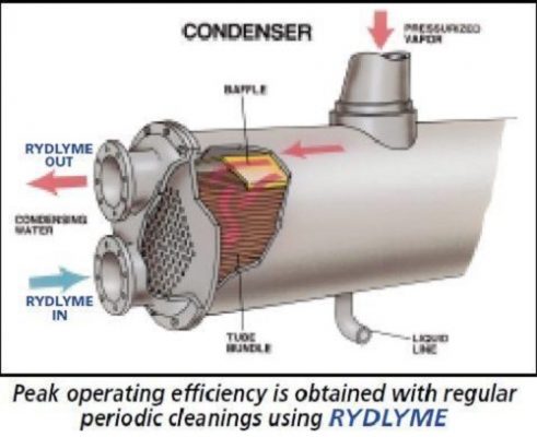 - Ở một nồng độ rất loãng thì Rydlyme sẽ tự phân hủy, do vậy trong trường hợp rửa hệ thống không sạch hoàn toàn hóa chất Rydlyme ra khỏi hệ thống thì cũng không ảnh hưởng gì đến thiết bị và hệ thống trong quá trình hoạt động do Rydlyme sẽ tự phân hủy trở thành nước. Điều này đặc biệt khác hoàn toàn với các hóa chất thông thường khác có sử dụng Acid .Vì ta không thể đảm bảo rửa sạch hoàn toàn 100% hóa chất ra khỏi hệ thống do có thể bị giắt lại tại các khe kẽ, ngõ cụt , khe gioăng phớt mặt bích… Vì vậy Acid sẽ bị tồn đọng trong thiết bị. Khi đi vào hoạt động, nhiệt độ tăng lên thì Acid sẽ phá hủy thiết bị nhanh chóng.