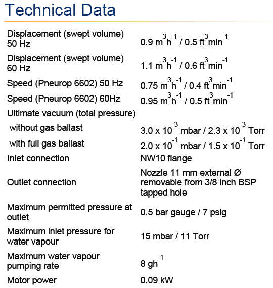 1. Thông số kĩ thuật dầu bơm chân không Edwards.