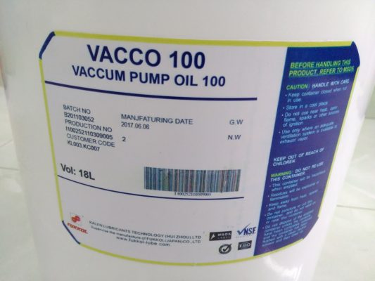 – Dầu chân không Vacco 100 là loại dầu cao cấp có thể làm việc ở những điều kiện khắc nghiệt, nhiệt độ cao có thể làm việc trong môi trường áp suất cao, môi trường có nhiệt độ cao. Bên cạnh đó, dầu Vacco còn chứa các chất phụ gia chống gỉ và hạn chế xu hướng hình thành carbon cao giúp dầu chân không này trở thành sản phẩm lý tưởng cho các loại bơm hút chân không vòng dầu.
