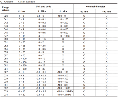 · 60 mm: -0.1 ~ 0 to 0 ~ 25 Mpa