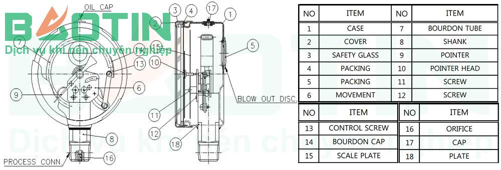 3,Cấu tạo của đồng hồ áp suất Wise P222: