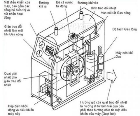 - Cấu tạo của máy sấy khí tác nhân lạnh.