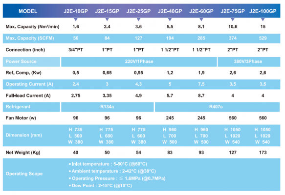 - Thông số kĩ thuật máy sấy khí tác nhân lạnh